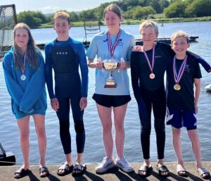 Five Fins’ junior swimmers made the short trip to Lochore Meadows on Sunday, 4 June, to compete in the Scottish East District Open Water Championships, in what proved to be a very successful day, with two Open Wins, three District wins, an Open 3rd place plus two District second places.